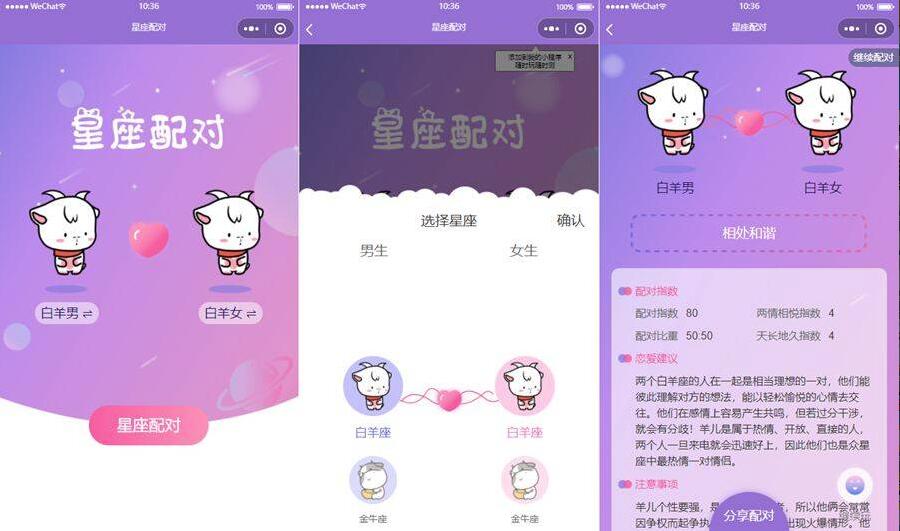 这是一套很不错的恋爱星座男女配对微信小程序源码,文件虽然很小,但是运行的好,可以为你带来不少流量,有流量就有收入,懂的都懂。