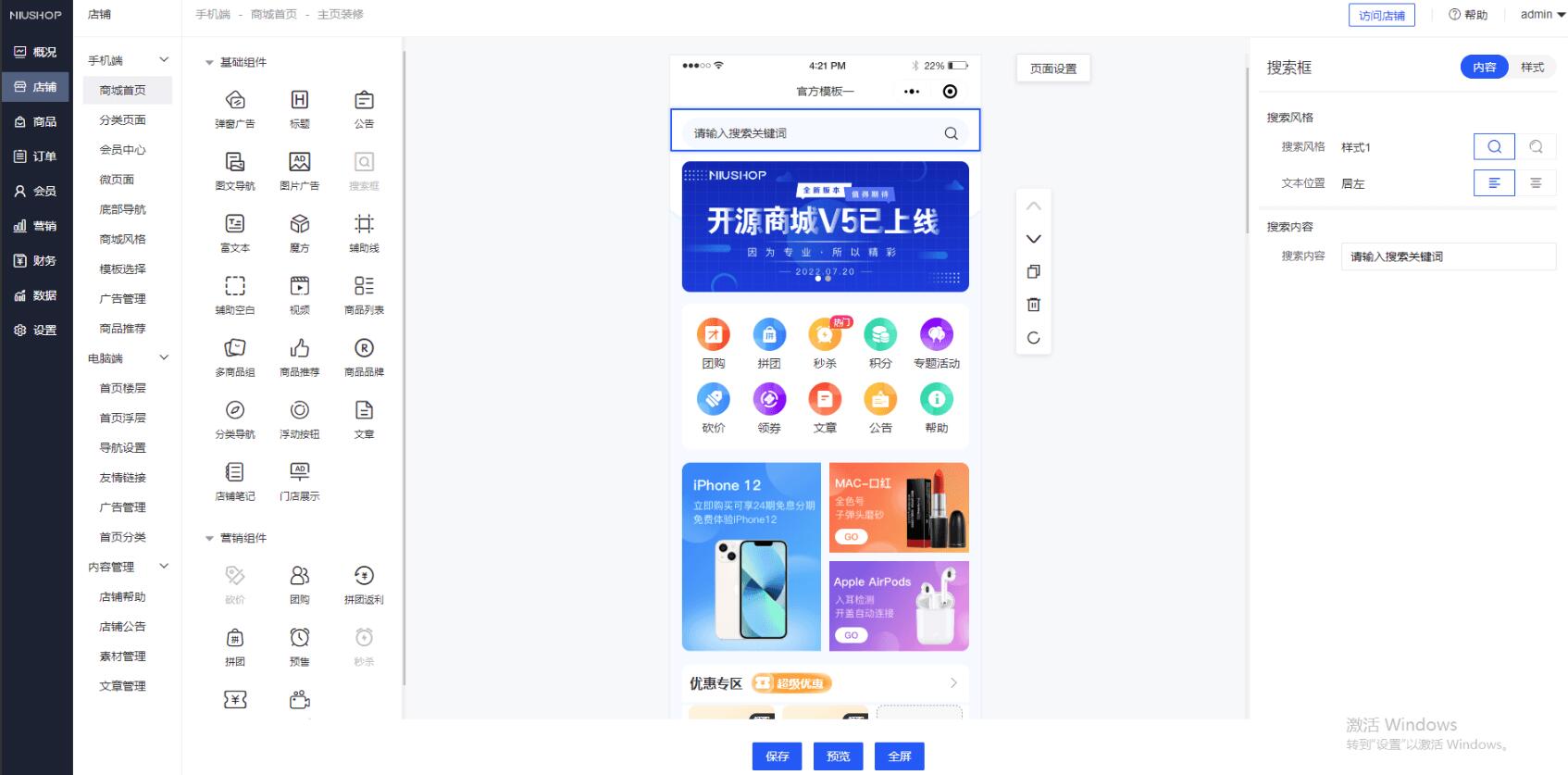 Niushop 系统是一款采用 ThinkPHP6 框架开发的完善电商系统。它具备强大的功能和安全便捷的特性, 同时也提供了稳定可靠的框架,方便进行系统的扩展。该系统的源码是100%开源的,支持二次开发和定制, 使企业能够以更低的成本、更少的人力和更快的速度构建自己的商城,并开展在线销售业务。