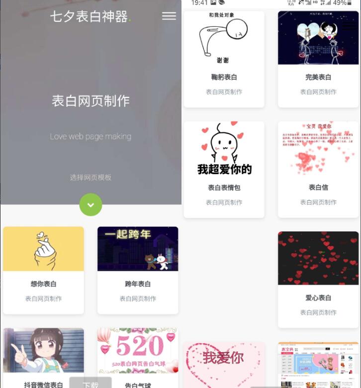 七夕一键生成表白墙源码 删掉了个人和趣味模版,在原来的表白模板上,加了10几个 无需数据库上传解压就行 后台:域名/ admin 账号密码都是admin 不建议用HTTPS,调用会错,这套源码放到网站上,可以吸来很多流量哦。