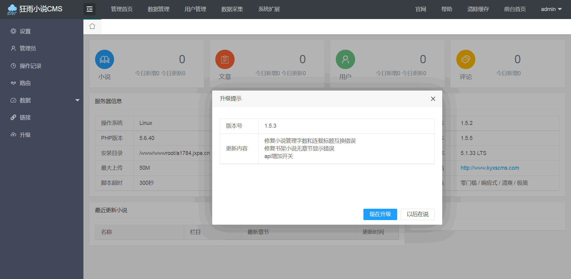 狂雨小说cms v1.5.2升级内容: