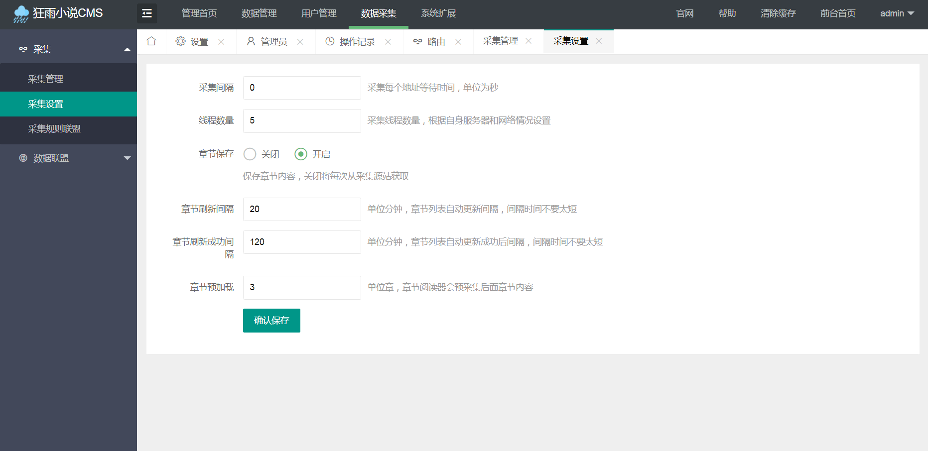 2、数据联盟,即时不会设置采集功能也可以获取大量小说数据