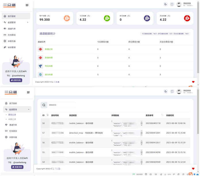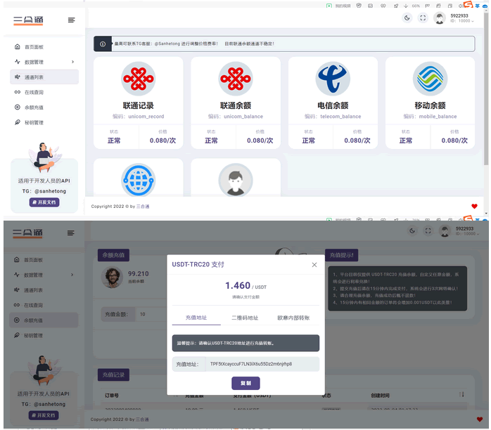 本套系统是用thinkphp6.0框架开发的,PHP需大于8.2,系统支持用户中心在线查询和通过API接口对接发起查询,用户余额充值是对接usdt接口,源码全开源,支持懂技术的人二次开发~