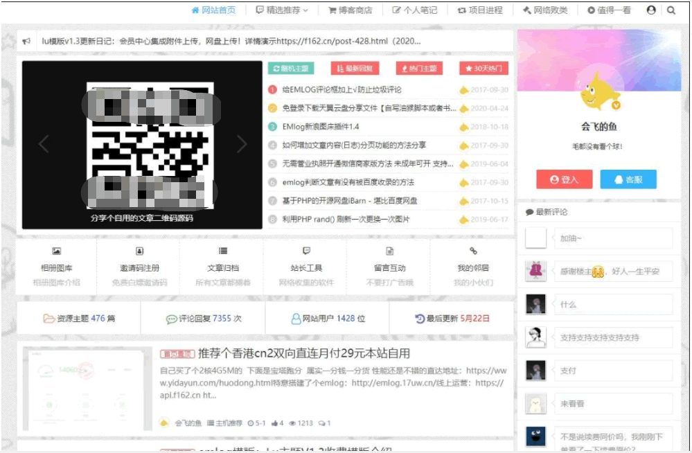 价值358的emlog博客定制模板lu1.3 这个模板是会飞的鱼~咱也是无意间看到分享一下而已。 由于Emlog缺少较多东西 为了能够让Lu模版更加的人性化 需要替换部分系统文件 替换的文件下面都会说一下