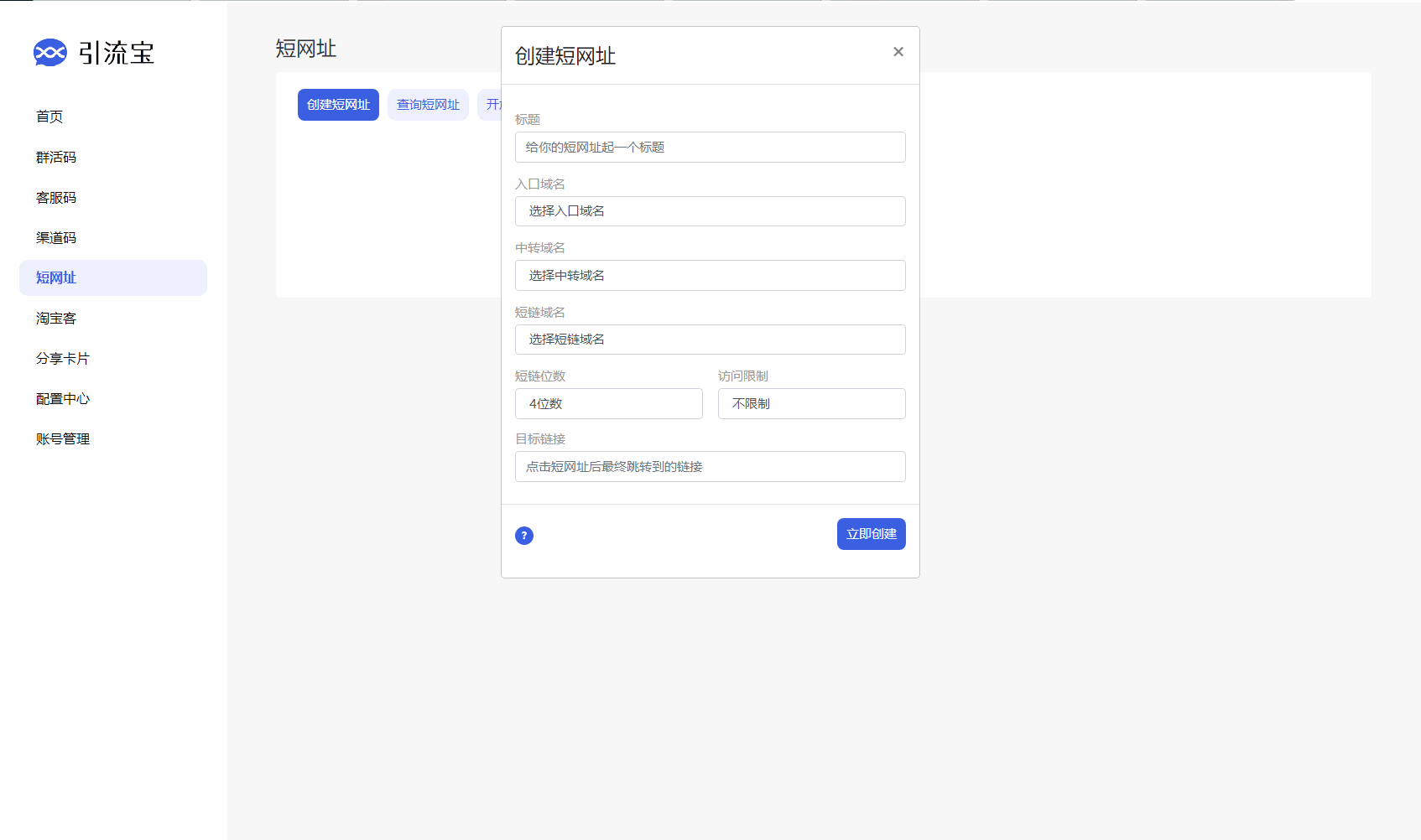 3. 可设置入口域名、落地域名、短链域名、生成短链接