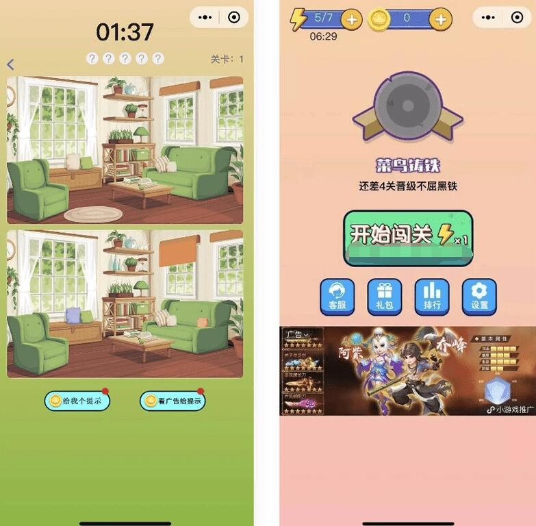 微信益智小游戏 大家来找茬微信小游戏 找不同微信小游戏 带流量主