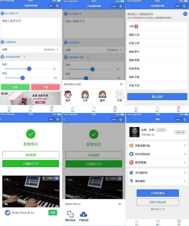 文字转语音微信小程序源码,可配音和娃娃语音合成