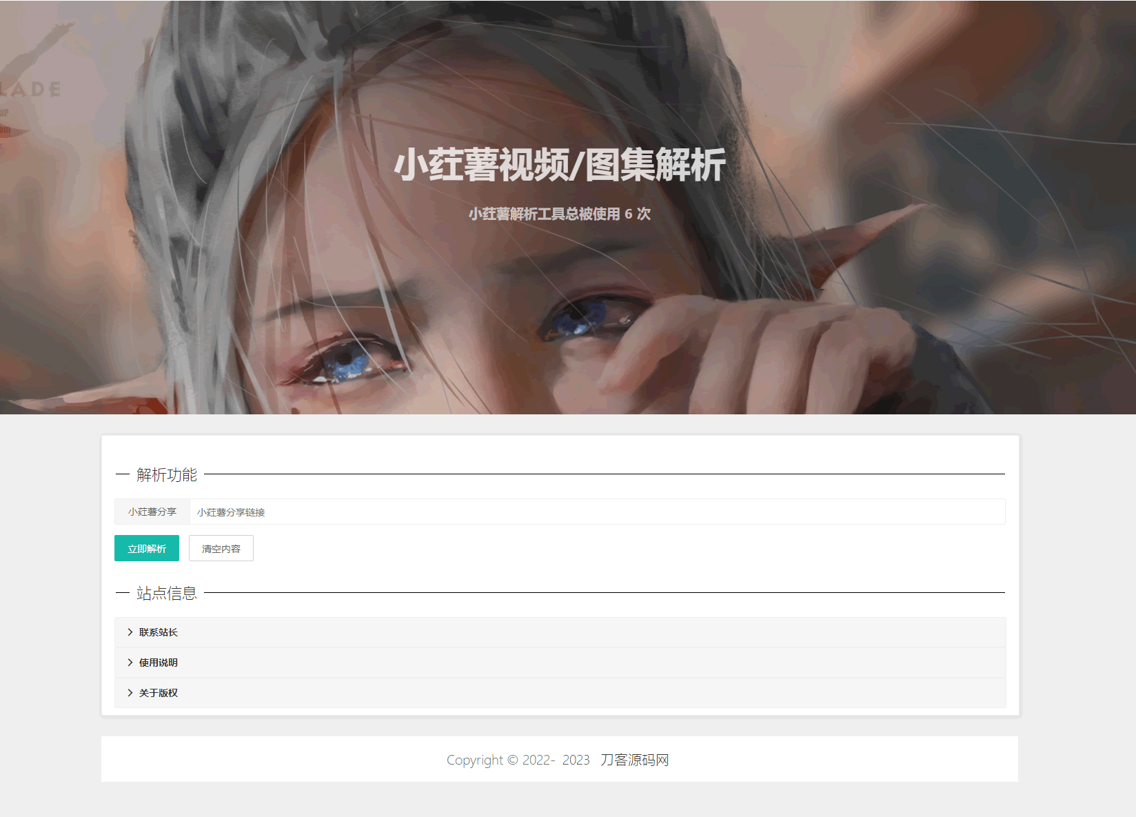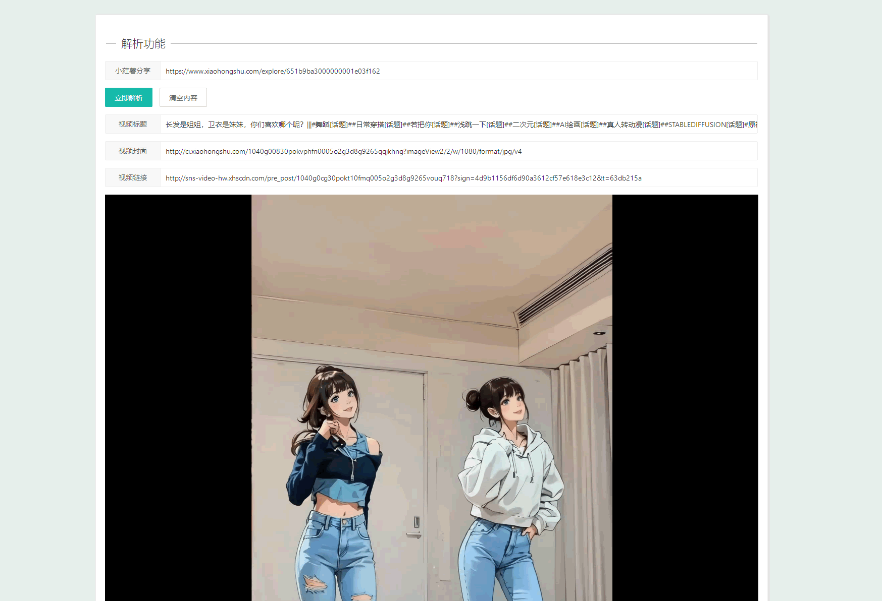 小红书视频图集解析网站源码,在红书看到好看的图片以及好看的头像,但是直接下载又有水印就非常难受,这个可以一键解析去除水印,支持统计解析次数,本地接口。