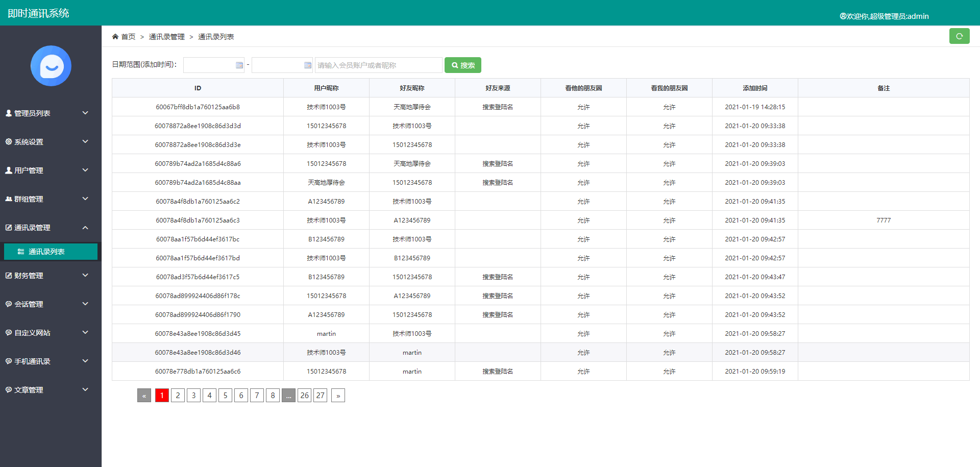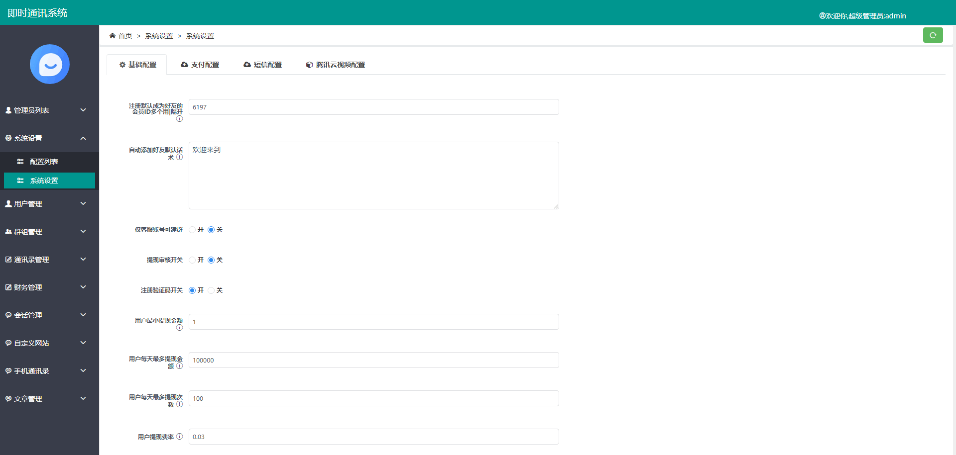 IM即时通讯/uniapp版本/交友APP视频聊天/im源码安卓ios原生web聊天/带搭建视频教程 1,IM聊天uniapp版本带在线音视频红包等功能, 2,后台自定义网址 3,集成uniPush推送 4,APP后台保活,本地推送+离线推送, 5,自动获取手机通讯录详情(地址,头像,社交QQ,手机号等信息), 6,安卓自动获取本机手机号(静默方式) 7,注册自动加客服好友,后台可以设置