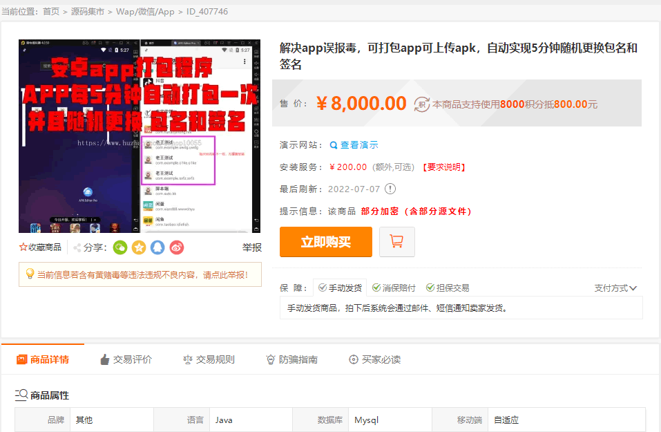 这套源码某站8000元呢。app封装系统 app误报毒app可上传 自动实现5分钟随机更换包名和签名+视频教程