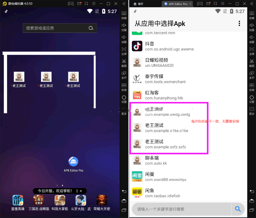 也可以上传打包好的apk五分钟自动更换包名和签名,