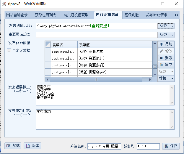 编辑文件夹中的Locoy.php,将第106行的密码“123123”改为只有自己知道的密码(也可以搜索secretWord),保存文件并上传到你的网站根目录。(不建议用文本文档编辑,可以用notepad或者dw来编辑)第二步:配置发布模块