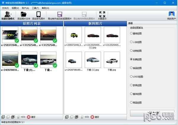 3.批量处理模式下,以车辆抠图为例,添加照片文件,点击一键抠图,AI自动识别效果如下图所示: