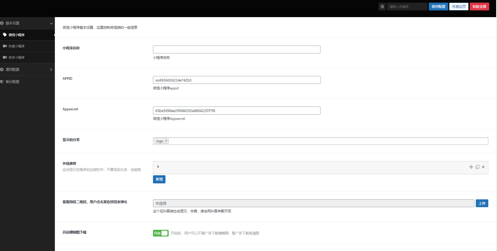 这是一款支持快手端,微信端,抖音三端的一个壁纸类型的小程序