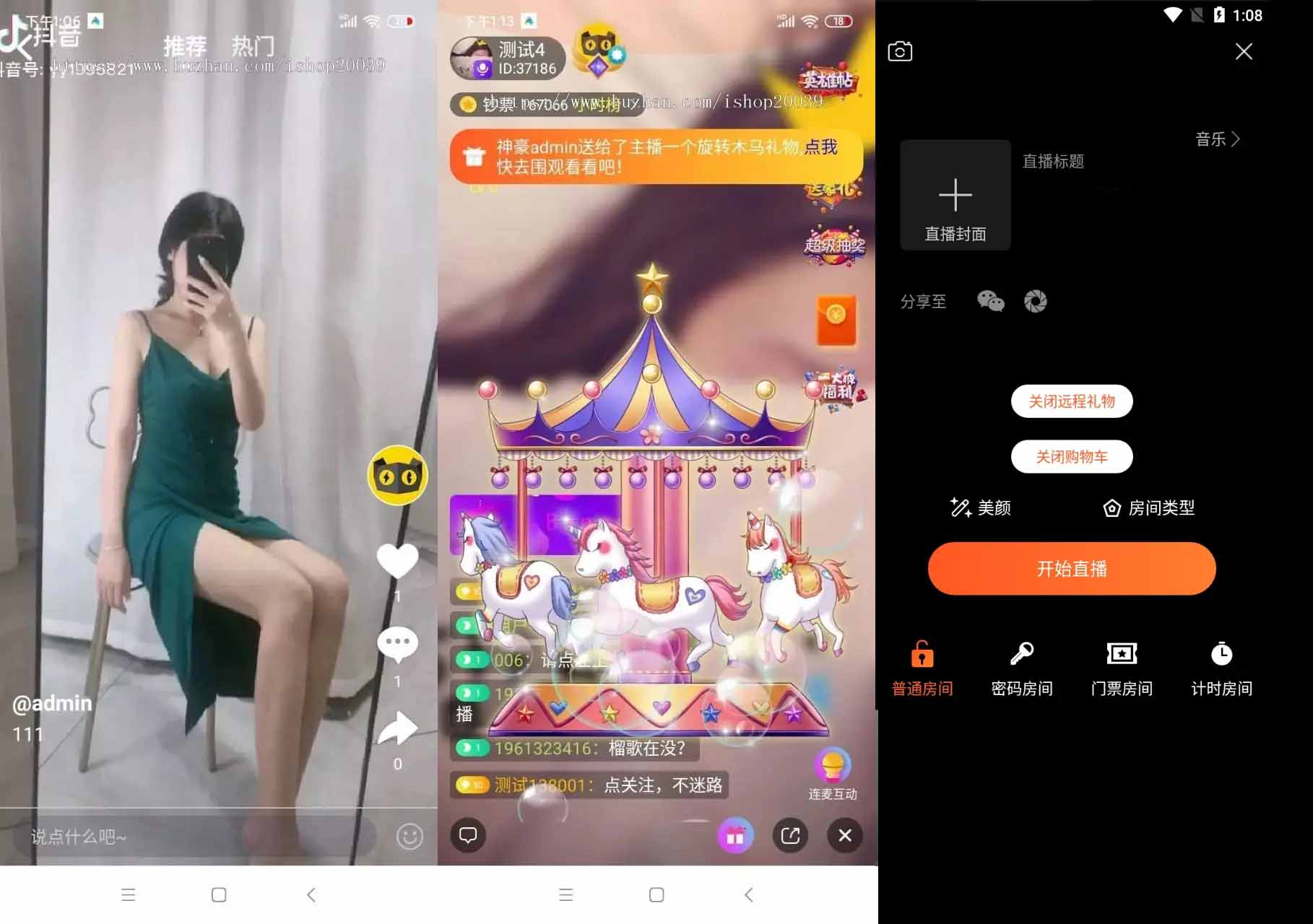 Web+安卓+H5+短视频+vip守护+进场坐骑+主播pk+互动连麦+直播间红包+直播间幸运礼物+商城+进场提醒+收费房间试看