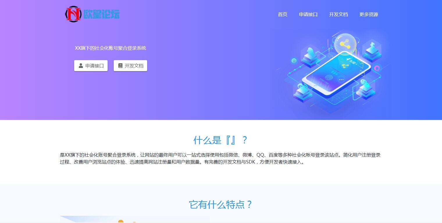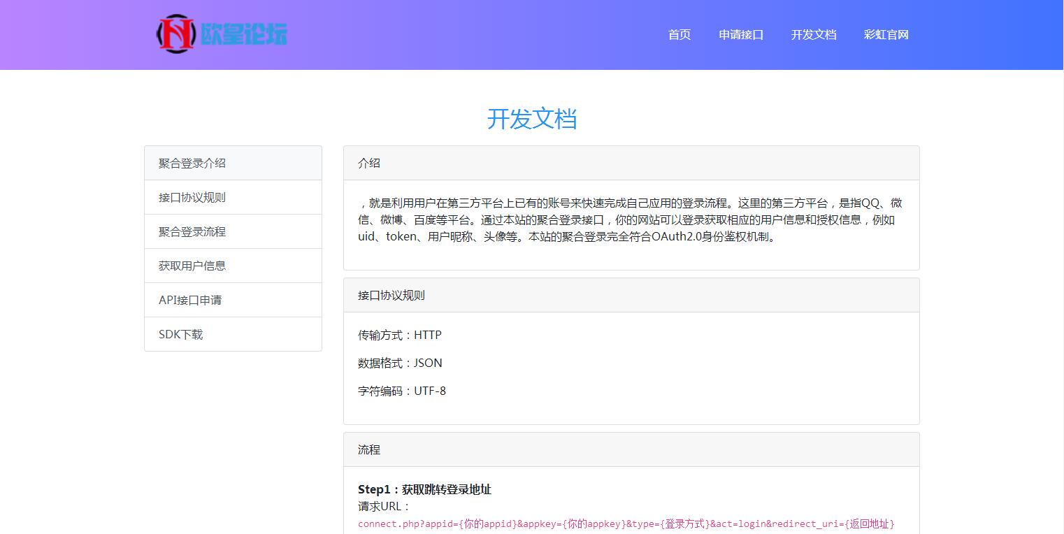 清轩聚合登录平台网站源码,彩虹聚合登录系统二开,后台采用 Layuiadmin 改版,增加了前台界面、开发文档、SDK 文件,