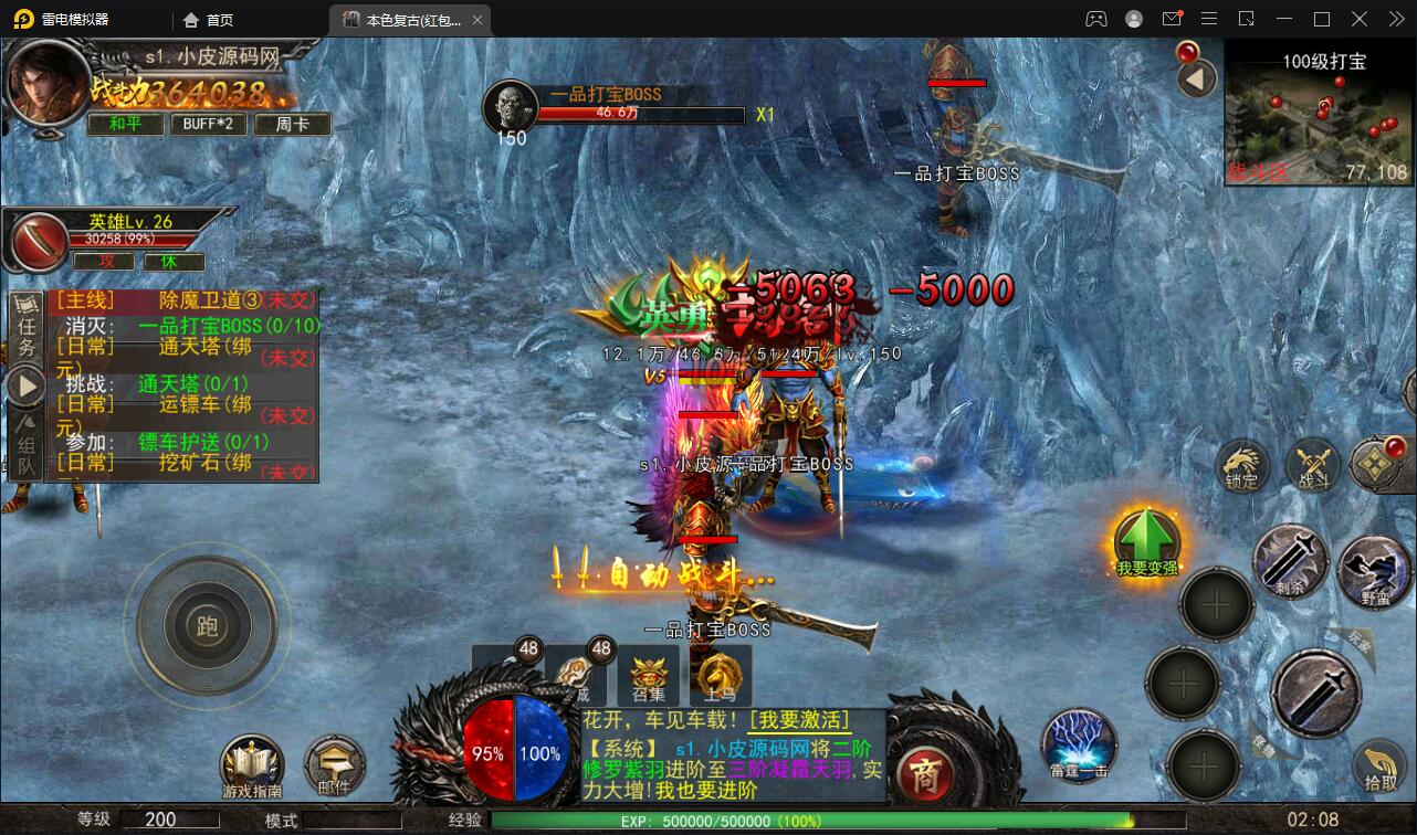 3、延续经典传奇游戏,包括红名PK,怪刷装炸药,回收元宝和公会的沙攻,收集顶级装备和武器。