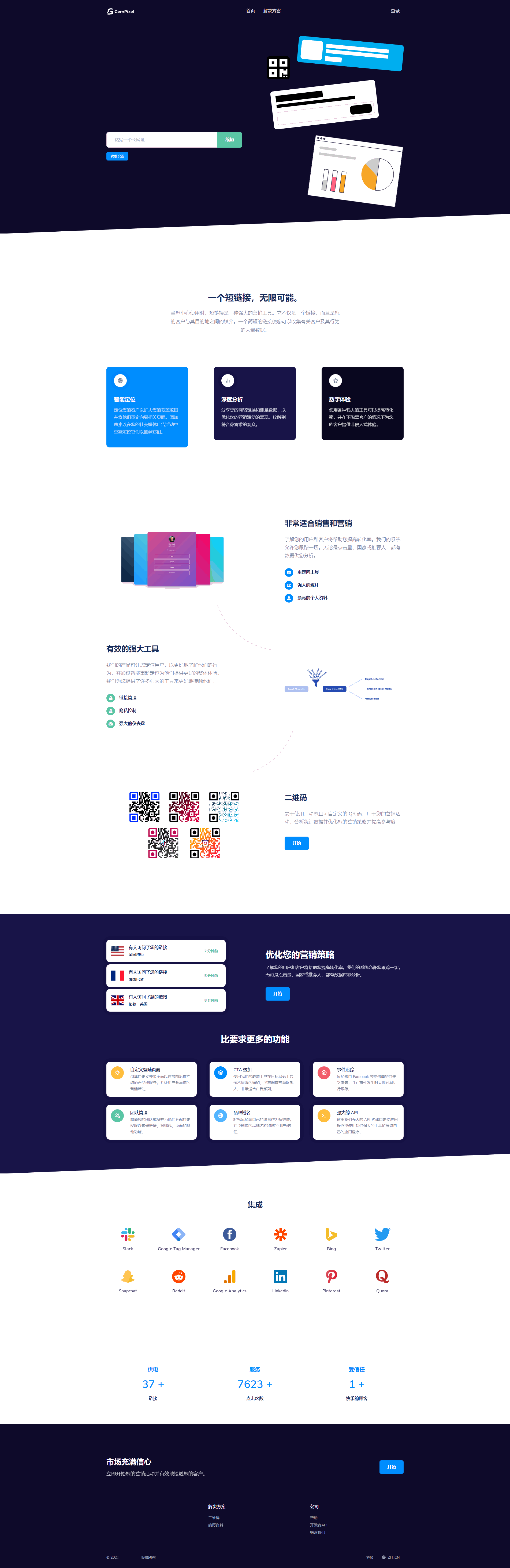 功能齐全的用户面板、用户系统、社交分享、短网址统计、顶点网短网址自定义、多国语言支持、