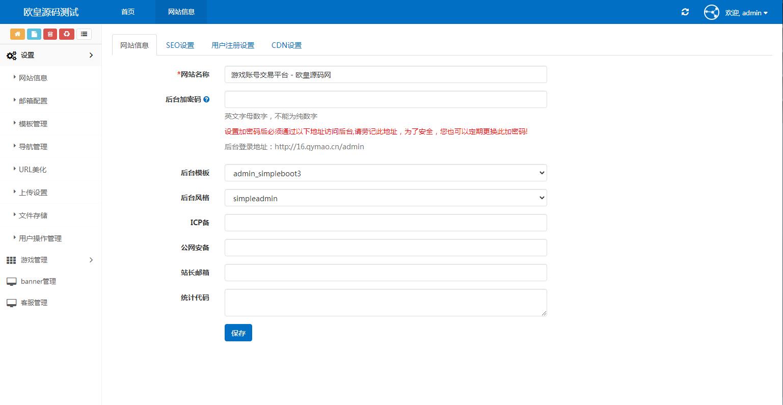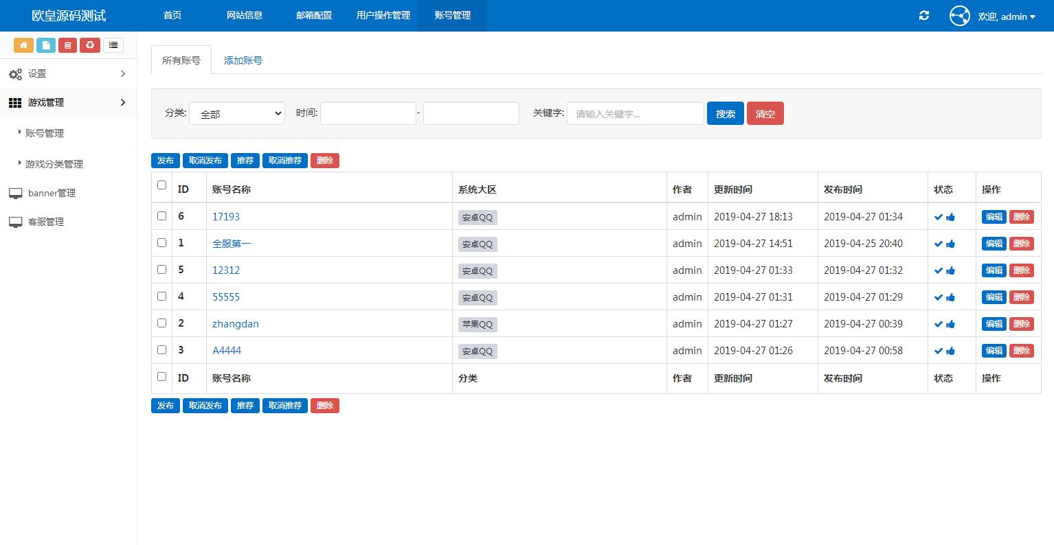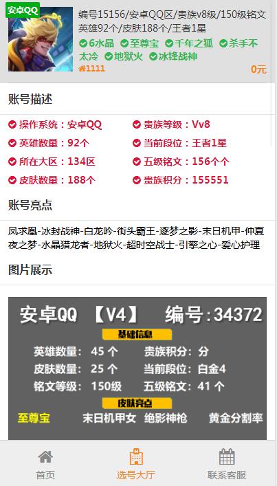 ThinkCMF开发的一款游戏账户出售交易系统,主功能为游戏账户交易,帐号展示。带后台,东西比较简单,有cdn的css和js失效了,自行替换一下即可。这套源码须要二开一下,有水平的群友拿去研究,小白绕道。
