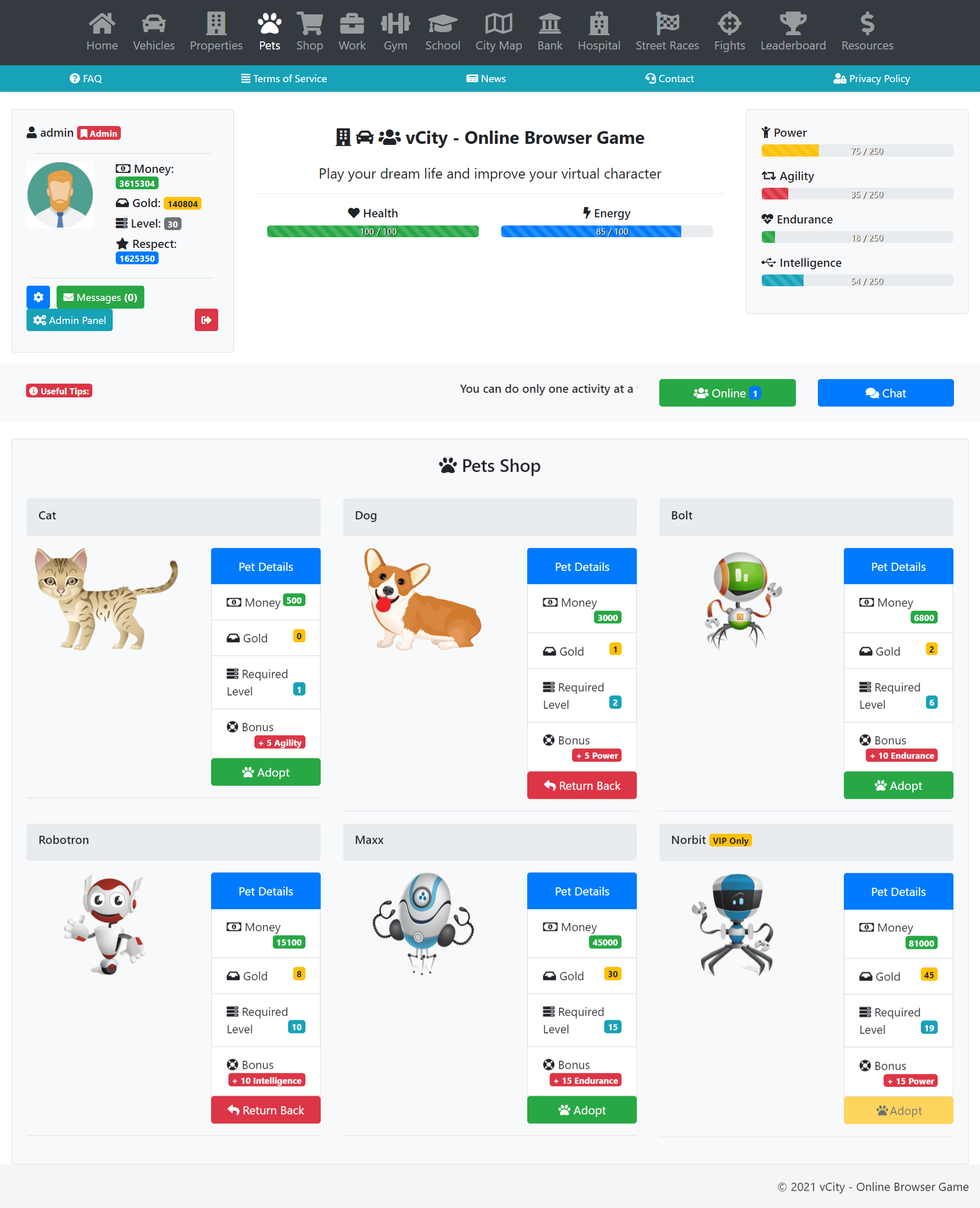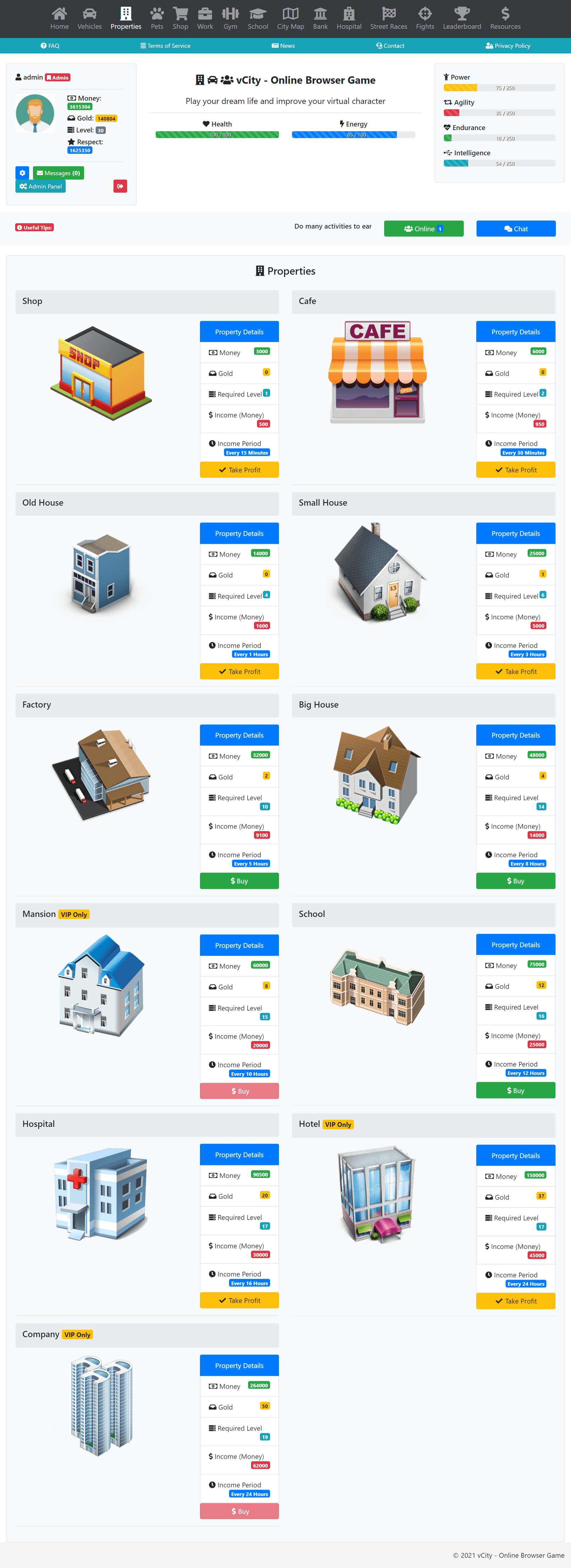 vCity Nulled 是一个采用最新网络技术开发的在线浏览器游戏平台。vCity Free Download Scripts 是多功能游戏脚本,可帮助您根据自己的喜好创建自己的在线浏览器游戏,因为它有许多选项和设置,可以通过这些选项和设置来修改和创建您想要的浏览器游戏。【该源码为一位大佬从某站高价260美金购进,现免费分享给大家】